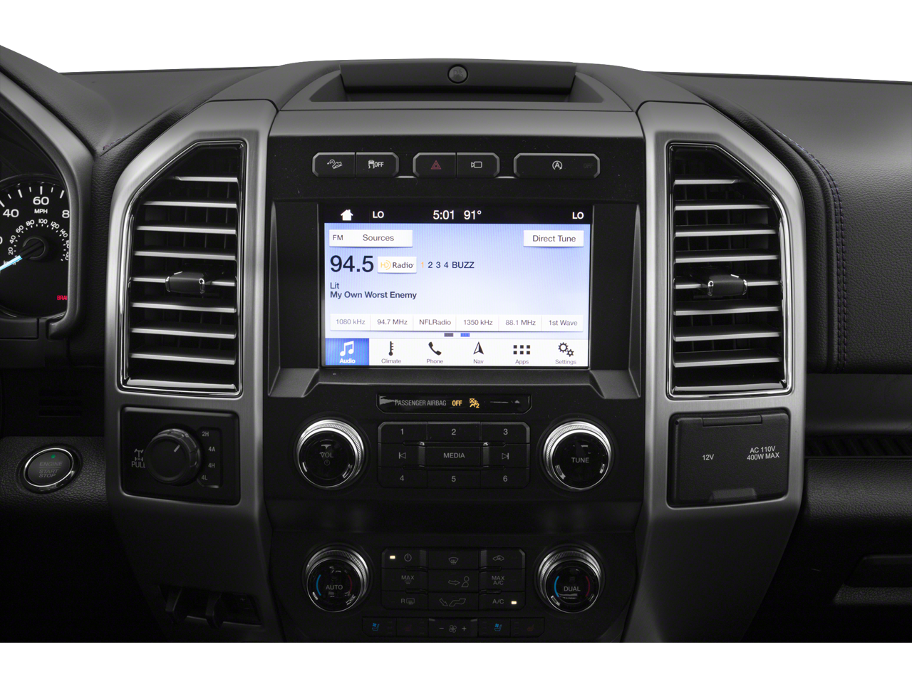 Beyond its impressive capabilities, this F-150 Platinum exudes refined elegance. The sleek black exterior commands attention, while the luxurious cabin pampers you with premium features. Sink into the plush, multi-contour leather seats and enjoy the soothing ambiance of the twin-panel moonroof. Stay connected and entertained with the state-of-the-art B&O sound system and SYNC 3 infotainment system.
