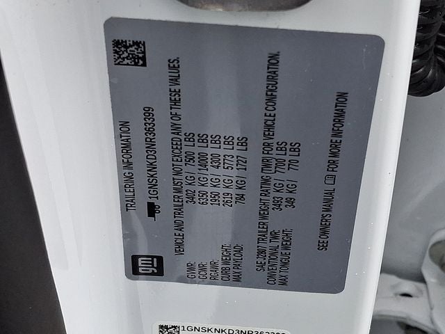 This Vehicle Includes the Following Options: Driver Alert Package (Lane Change Alert w/Side Blind Zone Alert and Rear Cross Traffic Alert), License Plate Front Mounting Package, Luxury Package (2nd Row Pwr Release 60/40 Split-Folding Bench Seat, 3rd Row 60/40 Power-Folding Split-Bench Seat, HD Surround Vision, Heated 2nd Row Outboard Seats, Heated Steering Wheel, Memory Settings, Outside Heated Power-Adjustable Mirrors, Power Tilt & Telescopic Steering Column, and Rear Pedestrian Alert), Preferred Equipment Group 1LT (1st & 2nd Row Color-Keyed Carpeted Floor Mats, Auto-Dimming Inside Rear-View Mirror, Automatic Stop/Start, Bose 9-Speaker Stereo Audio System Feature, Bright Front & Rear Door Sill Plates, Color-Keyed Carpeting Floor Covering, Driver & Front Outboard Passenger Airbags, Enhanced Driver Information Center, Floor Console w/Storage Area, Hands-Free Rear Power Programmable Liftgate, Infotainment Display, Leather-Wrapped Steering Wheel, LED Daytime Running Lamps, Memory Settings for Driver, Remote Start, SiriusXM Radio w/360L, Start/Stop System Disable Button, Universal Home Remote, and Wireless Charging), 4WD, Black Leather, 10-Way Power Driver & Passenger Seat Adjusters, 3.23 Rear Axle Ratio, 3rd row seats: split-bench, 4-Wheel Disc Brakes, 9 Speakers, ABS brakes, Air Conditioning, Alloy wheels, AM/FM radio: SiriusXM with 360L, Apple CarPlay/Android Auto, Auto High-beam Headlights, Auto-dimming Rear-View mirror, Automatic temperature control, Brake assist, Bumpers: body-color, Compass, Delay-off headlights, Driver door bin, Driver vanity mirror, Dual front impact airbags, Dual front side impact airbags, Dual-Pane Power Panoramic Sunroof, Electronic Stability Control, Emergency communication system: OnStar and Chevrolet connected services capable, Four wheel independent suspension, Front anti-roll bar, Front Bucket Seats, Front Center Armrest, Front dual zone A/C, Front High-Back Reclining Bucket Seats, Front reading lights, Fully automatic headlights, Garage door transmitter, Heated door mirrors, Heated Driver & Front Passenger Seats, Heated front seats, Illuminated entry, Leather steering wheel, Leather-Appointed Seat Trim, Low tire pressure warning, Memory seat, Navigation System, Not Equipped w/Front & Rear Park Assist, Not Equipped w/Steering Column Lock, Occupant sensing airbag, Outside temperature display, Overhead airbag, Overhead console, Panic alarm, Passenger door bin, Passenger vanity mirror, Power door mirrors, Power driver seat, Power Liftgate, Power passenger seat, Power Release 2nd Row Bucket Seats, Power steering, Power windows, Premium audio system: Chevrolet Infotainment System 3, Premium Smooth Ride Suspension, Radio: Chevrolet Infotainment 3 Premium System, Rain sensing wipers, Rear air conditioning, Rear anti-roll bar, Rear reading lights, Rear seat center armrest, Rear window defroster, Rear window wiper, Remote keyless entry, Roof rack: rails only, Security system, Speed control, Speed-sensing steering, Split folding rear seat, Spoiler, Steering wheel mounted audio controls, Tachometer, Telescoping steering wheel, Tilt steering wheel, Traction control, Trip computer, Variably intermittent wipers, Voltmeter, and Wheels: 18 x 8.5 Bright Silver Painted Aluminum.