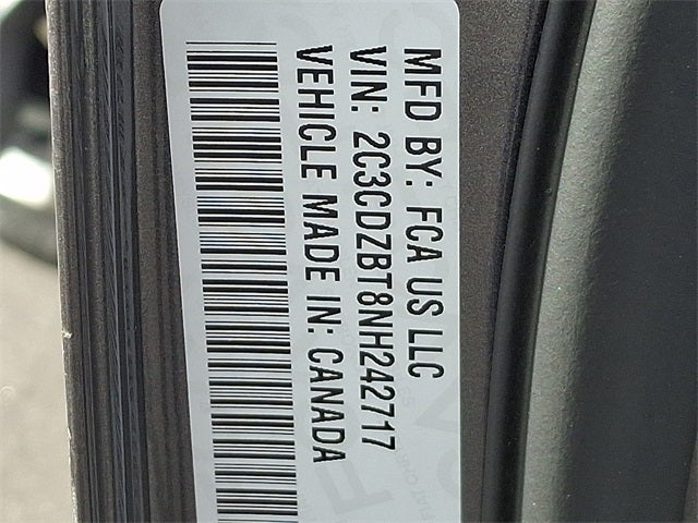 THIS VEHICLE INCLUDES THE FOLLOWING FEATURES AND OPTIONS: Blacktop Package (Rear Black Spoiler and Wheels: 20 x 8.0 Black Noise Painted), Driver Convenience Group (Blind Spot & Cross Path Detection and High-Intensity Discharge Headlamps), Plus Package (1-Yr SiriusXM Guardian Trial, 276 Watt Amplifier, Apple CarPlay, Compass Gauge, Dodge Performance Pages, For Details, Visit DriveUconnect.com, Google Android Auto, GPS Antenna Input, Integrated Center Stack Radio, Integrated Voice Command w/Bluetooth®, Line Lock, Media Hub (2 USB, AUX), Shark Fin Antenna, SiriusXM Radio Service, SiriusXM Satellite Radio, and USB Host Flip), Quick Order Package 28H, 4-Wheel Disc Brakes, 6 Speakers, ABS brakes, Air Conditioning, Alloy wheels, AM/FM radio, Anti-whiplash front head restraints, Apple CarPlay/Android Auto, Auto-dimming Rear-View mirror, Automatic temperature control, Brake assist, Bumpers: body-color, Compass, Delay-off headlights, Driver door bin, Driver vanity mirror, Dual front impact airbags, Dual front side impact airbags, Electronic Stability Control, Four wheel independent suspension, Front anti-roll bar, Front Bucket Seats, Front Center Armrest, Front dual zone A/C, Front fog lights, Front License Plate Bracket, Front reading lights, Fully automatic headlights, Garage door transmitter, Heated door mirrors, Houndstooth Cloth Performance Seats, Illuminated entry, Leather Shift Knob, Low tire pressure warning, Outside temperature display, Overhead airbag, Overhead console, Panic alarm, ParkView Rear Back-Up Camera, Passenger door bin, Passenger vanity mirror, Power door mirrors, Power driver seat, Power steering, Power windows, Radio data system, Radio: Uconnect 4 w/7 Display, Radio: Uconnect 4C Nav w/8.4 Display, Rear anti-roll bar, Rear reading lights, Rear seat center armrest, Rear window defroster, Remote keyless entry, Security system, SiriusXM Travel Link, Speed control, Speed-sensing steering, Split folding rear seat, Spoiler, Sport steering wheel, Steering wheel mounted audio controls, Tachometer, Telescoping steering wheel, Tilt steering wheel, Traction control, Trip computer, Variably intermittent wipers, and Wheels: 20 x 8.0 Satin Carbon Aluminum.