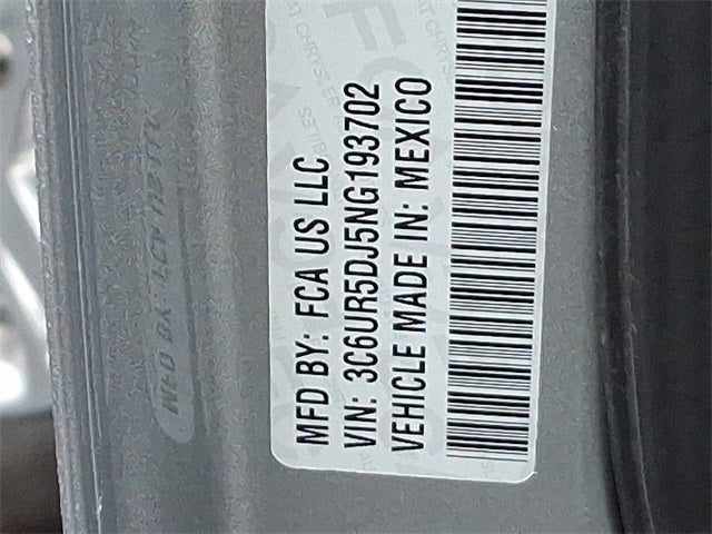 THIS VEHICLE INCLUDES THE FOLLOWING FEATURES AND OPTIONS: Bed Utility Group (LED Bed Lighting, MOPAR Deployable Bed Step, and MOPAR Spray In Bedliner), Level C Equipment Group (115V Auxiliary Front Power Outlet, 115V Auxiliary Rear Power Outlet, 2 Way Rear Headrest Seat, 2nd Row In Floor Storage Bins, 4 Way Front Headrests, 40/20/40 Split Bench Seat, 400W Inverter, Air Conditioning ATC w/Dual Zone Control, Auto-Dimming Rear-View Mirror, Center Hub, Center Stack Storage Drawer, Cluster 7.0 TFT Color Display, Dampened Tailgate, Dual Glove Boxes, Exterior 115V AC Outlet, Foam Bottle Insert (Door Trim Panel), Folding Flat Load Floor Storage, Footwell Courtesy Lamp, Front Armrest w/Cupholders, Front Center Seat Cushion Storage, Front Fog Lamps, Front Seat Back Map Pockets, Glove Box Lamp, Heated Front Seats, Heated Steering Wheel, Leather Wrapped Steering Wheel, LED Tail Lamps, Locking Lower Glove Box, Manual Adjust 4-Way Front Passenger Seat, Media Hub w/2 Charge Only USBs, ParkSense Front/Rear Park Assist System, Power 2-Way Driver Lumbar Adjust, Power Adjust 8-Way Driver Seat, Power Adjustable Pedals, Premium Cloth 40/20/40 Bench Seat, Rear 60/40 Folding Seat, Rear Dome w/On/Off Switch Lamp, Rear Power Sliding Window, Rear Window Defroster, Remote Start System, Security Alarm, Steering Wheel Mounted Audio Controls, Storage Tray, Sun Visors w/Illuminated Vanity Mirrors, Universal Garage Door Opener, and Wheels: 18 x 8.0 Polished Aluminum), Off Road Package (Front Performance Tuned Shock Absorbers, Hill Descent Control, Off Road Decal, Rear Performance Tuned Shock Absorbers, and Tow Hooks), Quick Order Package 2GZ Big Horn, Safety Group B (DISC) (Adaptive Cruise Control w/Stop, Adaptive Steering System, Auto High Beam Headlamp Control, Digital Rearview Mirror, Full Speed Forward Collision Warning Plus, Lane Keep Assist, and Rain Sensitive Windshield Wipers), 220 Amp Alternator, 4-Wheel Disc Brakes, 4G LTE Wi-Fi Hot Spot, 5th Wheel/Gooseneck Towing Prep Group, 6 Speakers, 8.4 Touchscreen Display, ABS brakes, Active Noise Control System, Air Conditioning, AM/FM radio: SiriusXM, Anti-Spin Differential Rear Axle, Apple CarPlay, Apple CarPlay/Android Auto, Bluetooth® Handsfree Phone & Audio, Brake assist, Bumpers: chrome, Cloth 40/20/40 Bench Seat, Compass, Connectivity - US/Canada, CTR Stop Lamp w/Cargo View Camera, Delay-off headlights, Driver door bin, Dual front impact airbags, Dual front side impact airbags, Electronic Stability Control, Electronically Controlled Throttle, Engine Block Heater, Front anti-roll bar, Front Center Armrest w/Storage, Front License Plate Bracket, Front reading lights, Fully automatic headlights, Global Telematics Box Module (TBM), Google Android Auto, GPS Antenna Input, Heated door mirrors, Illuminated entry, Integrated Center Stack Radio, Integrated Voice Command w/Bluetooth®, Low tire pressure warning, Manual Adjust 4-Way Driver Seat, Manufacturer's Statement of Origin, Occupant sensing airbag, Outside temperature display, Overhead airbag, Overhead console, Panic alarm, ParkView Rear Back-Up Camera, Passenger door bin, Passenger vanity mirror, Power door mirrors, Power steering, Power windows, Radio data system, Radio: Uconnect 5 W w/8.4 Display, Rear anti-roll bar, Rear Folding Seat, Rear seat center armrest, Rear step bumper, Rear Wheelhouse Liners, Remote keyless entry, Selectable Tire Fill Alert, SiriusXM Radio Service, SiriusXM Satellite Radio, Speed control, Tachometer, Tilt steering wheel, Tip Start, Traction control, Trip computer, Turn signal indicator mirrors, Variably intermittent wipers, Vendor Painted Cargo Box, Vendor Painted Cargo Box Tracking, Voltmeter, and Wheels: 18 x 8.0 Steel Chrome Clad.