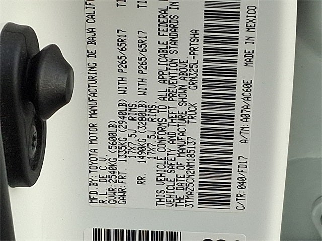 THIS VEHICLE INCLUDES THE FOLLOWING FEATURES AND OPTIONS: ABS brakes, Active Cruise Control, Air Conditioning, Alloy wheels, Automatic temperature control, Electronic Stability Control, Front dual zone A/C, Heated door mirrors, Illuminated entry, Low tire pressure warning, Remote keyless entry, Traction control, 120V/400W Deck Mounted AC Power, 6 Speakers, AM/FM radio: SiriusXM, Anti-whiplash front head restraints, Apple CarPlay/Android Auto, Auto High-beam Headlights, Auto-dimming Rear-View mirror, Axle Ratio: 3.91, Brake assist, Bumpers: body-color, Color-Keyed Rear Bumper, Driver door bin, Dual front impact airbags, Dual front side impact airbags, Emergency communication system: Safety Connect with 1-year trial, Engine Immobilizer, Exterior Parking Camera Rear, Fabric Seat Trim (FD), Front anti-roll bar, Front Bucket Seats, Front Center Armrest, Front fog lights, Front reading lights, Front Seats, Front wheel independent suspension, Knee airbag, Leather Shift Knob, Occupant sensing airbag, Outside temperature display, Overhead airbag, Overhead console, Panic alarm, Passenger door bin, Power door mirrors, Power driver seat, Power steering, Power windows, Radio: AM/FM Radio, Rear step bumper, Security system, Smart Key w/Push Button Start, Speed control, Speed-sensing steering, Split folding rear seat, Steering wheel mounted audio controls, Tachometer, Telescoping steering wheel, Tilt steering wheel, Trip computer, Turn signal indicator mirrors, Variably intermittent wipers, and Wheels: 17 x 7.5J Machined Alloy.