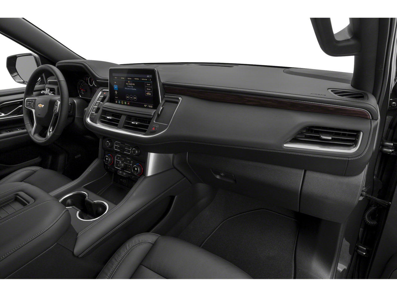 This Vehicle Includes the Following Options: License Plate Front Mounting Package, Preferred Equipment Group 1LT (1st & 2nd Row Color-Keyed Carpeted Floor Mats, Auto-Dimming Inside Rear-View Mirror, Bose 9-Speaker Stereo Audio System Feature, Bright Front & Rear Door Sill Plates, Color-Keyed Carpeting Floor Covering, Driver & Front Outboard Passenger Airbags, Enhanced Driver Information Center, Floor Console w/Storage Area, Hands-Free Rear Power Programmable Liftgate, Infotainment Display, LED Daytime Running Lamps, Memory Settings for Driver, Remote Start, SiriusXM Radio w/360L, Universal Home Remote, Wireless Charging, and Wrapped Steering Wheel), 4WD, Black Leather, 10-Way Power Driver & Passenger Seat Adjusters, 2nd Row Manual Bucket Seats, 3.23 Rear Axle Ratio, 3rd row seats: split-bench, 4-Wheel Disc Brakes, 9 Speakers, ABS brakes, Air Conditioning, Alloy wheels, AM/FM radio: SiriusXM with 360L, Apple CarPlay/Android Auto, Auto High-beam Headlights, Auto-dimming Rear-View mirror, Automatic temperature control, Brake assist, Bumpers: body-color, Compass, Delay-off headlights, Deleted 3 Years of Remote Access, Driver door bin, Driver vanity mirror, Dual front impact airbags, Dual front side impact airbags, Electronic Stability Control, Emergency communication system: OnStar and Chevrolet connected services capable, Four wheel independent suspension, Front anti-roll bar, Front Bucket Seats, Front Center Armrest, Front dual zone A/C, Front High-Back Reclining Bucket Seats, Front reading lights, Fully automatic headlights, Garage door transmitter, Heated door mirrors, Heated Driver & Front Passenger Seats, Heated front seats, Illuminated entry, Leather-Appointed Seat Trim, Low tire pressure warning, Memory seat, Navigation System, Occupant sensing airbag, Outside temperature display, Overhead airbag, Overhead console, Panic alarm, Passenger door bin, Passenger vanity mirror, Power door mirrors, Power driver seat, Power Liftgate, Power passenger seat, Power steering, Power windows, Premium audio system: Chevrolet Infotainment 3 Premium, Premium Smooth Ride Suspension, Radio: Chevrolet Infotainment 3 Premium System, Rain sensing wipers, Rear air conditioning, Rear anti-roll bar, Rear reading lights, Rear seat center armrest, Rear window defroster, Rear window wiper, Remote keyless entry, Roof rack: rails only, Security system, Speed control, Speed-sensing steering, Split folding rear seat, Spoiler, Steering wheel mounted audio controls, Tachometer, Telescoping steering wheel, Tilt steering wheel, Traction control, Trip computer, Variably intermittent wipers, Voltmeter, and Wheels: 18 x 8.5 Bright Silver Painted Aluminum.
