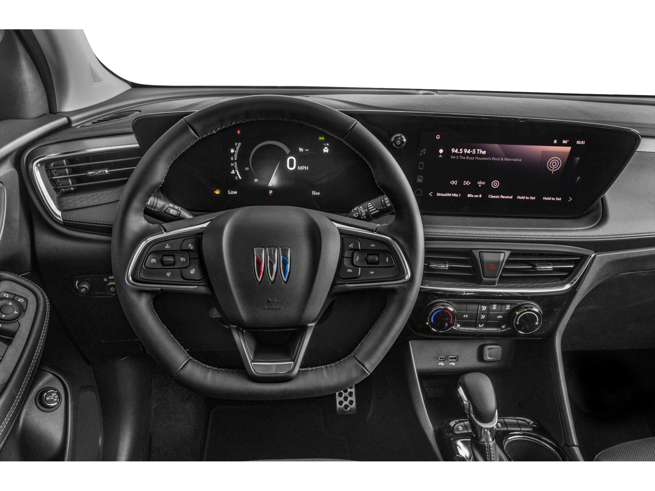 THIS VEHICLE INCLUDES THE FOLLOWING FEATURES AND OPTIONS: Preferred Equipment Group 1SD, 2 USB Ports (1 Type-A, 1 Type-C), 3.17 Final Drive Axle Ratio, 4-Way Manual Passenger Seat Adjuster, 4-Wheel Disc Brakes, 6-Way Manual Driver Seat Adjuster, 7 Speakers, ABS brakes, Air Conditioning, Alloy wheels, AM/FM radio: SiriusXM, Auto High-beam Headlights, Automatic temperature control, Brake assist, Bumpers: body-color, Compass, Delay-off headlights, Deleted 3 Years of OnStar Remote Access, Driver door bin, Driver vanity mirror, Dual front impact airbags, Dual front side impact airbags, Electronic Stability Control, Emergency communication system: OnStar and Buick connected services capable, Enhanced Performance 7-Speaker System w/Amplifier, Front anti-roll bar, Front Bucket Seats, Front Center Armrest, Front License Plate Bracket, Front reading lights, Front wheel independent suspension, Fully automatic headlights, Heated door mirrors, Illuminated entry, Knee airbag, Leatherette Seat Trim, Low tire pressure warning, Occupant sensing airbag, Outside temperature display, Overhead airbag, Overhead console, Panic alarm, Passenger door bin, Passenger vanity mirror, Power door mirrors, Power steering, Power windows, Radio data system, Radio: Audio System w/AM/FM, Rear reading lights, Rear side impact airbag, Rear window defroster, Rear window wiper, Remote keyless entry, Ride & Handling Suspension, Security system, SiriusXM, Speed control, Speed-sensing steering, Split folding rear seat, Spoiler, Sport steering wheel, Steering wheel mounted audio controls, Tachometer, Telescoping steering wheel, Tilt steering wheel, Traction control, Trip computer, Variably intermittent wipers, Wheels: 18 Gloss Black Aluminum, and Wireless Apple CarPlay/Wireless Android Auto.