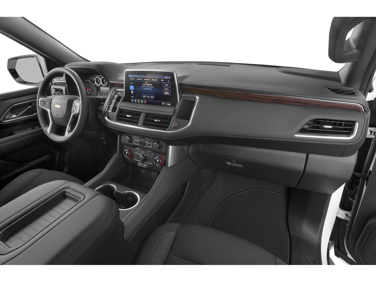 This Vehicle Includes the Following Options: License Plate Front Mounting Package, Preferred Equipment Group 1LS (1st & 2nd Row Color-Keyed Carpeted Floor Mats, Color-Keyed Carpeting Floor Covering, Driver & Front Outboard Passenger Airbags, Floor Console w/Storage Area, LED Daytime Running Lamps, Remote Start, SiriusXM w/360L, and Wrapped Steering Wheel), 4WD, Black Cloth, 3.23 Rear Axle Ratio, 3rd row seats: split-bench, 4-Wheel Disc Brakes, 6 Speakers, 6-Speaker Audio System Feature, ABS brakes, Air Conditioning, Alloy wheels, AM/FM radio: SiriusXM with 360L, Apple CarPlay/Android Auto, Auto High-beam Headlights, Automatic temperature control, Brake assist, Bumpers: body-color, Compass, Delay-off headlights, Driver door bin, Driver vanity mirror, Dual front impact airbags, Dual front side impact airbags, Electronic Stability Control, Emergency communication system: OnStar and Chevrolet connected services capable, Four wheel independent suspension, Front anti-roll bar, Front Bucket Seats, Front Center Armrest, Front dual zone A/C, Front High-Back Reclining Bucket Seats, Front reading lights, Fully automatic headlights, Heated door mirrors, Illuminated entry, Infotainment Display, Low tire pressure warning, Occupant sensing airbag, Outside temperature display, Overhead airbag, Overhead console, Panic alarm, Passenger door bin, Passenger vanity mirror, Power door mirrors, Power driver seat, Power passenger seat, Power steering, Power windows, Premium audio system: Chevrolet Infotainment 3, Premium Cloth Seat Trim, Premium Smooth Ride Suspension, Radio: Chevrolet Infotainment 3 System, Rain sensing wipers, Rear air conditioning, Rear anti-roll bar, Rear reading lights, Rear seat center armrest, Rear window defroster, Rear window wiper, Remote keyless entry, Roof rack: xxxxxx, Security system, Speed control, Speed-sensing steering, Split folding rear seat, Spoiler, Steering wheel mounted audio controls, Tachometer, Telescoping steering wheel, Tilt steering wheel, Traction control, Trip computer, Variably intermittent wipers, Voltmeter, and Wheels: 18 x 8.5 Bright Silver Painted Aluminum.