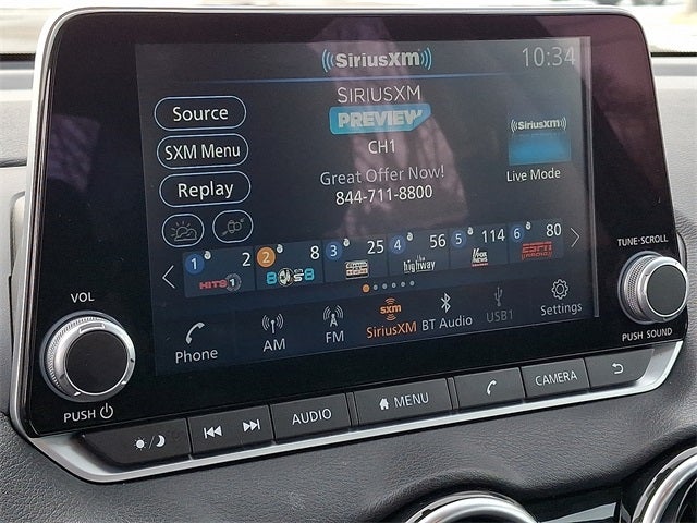 - Radio: AM/FM w/RDS/MP3/Aux-In -inc: 6 speakers plus 2 tweeters in A-pillar, 8" color display w/multi-touch control, streaming audio via Bluetooth®, Bluetooth® hands-free phone system, hands-free text messaging assistant, Siri Eyes Free, Google Assistant voice recognition w/Apple CarPlay and Android Auto, NissanConnect, (1) front USB connection port (type A), (1) additional front USB (type C), (1) charge-only USB (type A) center console and SiriusXM radio w/advanced audio features
