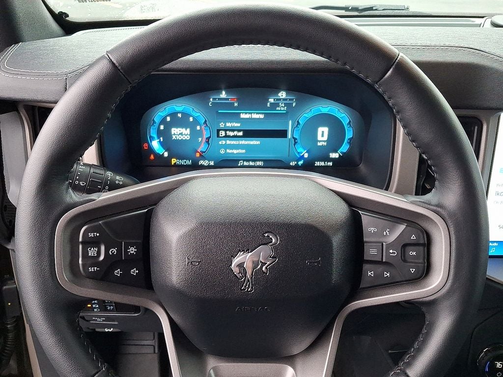 THIS VEHICLE INCLUDES THE FOLLOWING FEATURES AND OPTIONS: Equipment Group 312A Mid Package, 18 Bright Machined Aluminum Wheels, 3.73 Axle Ratio, 4-Wheel Disc Brakes, 7 Speakers, ABS brakes, Air Conditioning, Alloy wheels, AM/FM radio: SiriusXM with 360L, AM/FM Stereo, Auto High-beam Headlights, Auto-dimming Rear-View mirror, Automatic temperature control, Brake assist, Cargo Area Protector, Compass, Connected Navigation, Delay-off headlights, Driver door bin, Driver vanity mirror, Dual front impact airbags, Dual front side impact airbags, Electronic Stability Control, Emergency communication system: 911 Assist, Exterior Parking Camera Rear, Front & Rear Floor Liners w/o Carpet Floor Mats, Front anti-roll bar, Front Bucket Seats, Front Center Armrest, Front dual zone A/C, Front fog lights, Front License Plate Bracket, Front reading lights, Front wheel independent suspension, Fully automatic headlights, Hard Top Sound Deadening Headliner, Heated door mirrors, Heated front seats, Heated Leather-Trimmed/Vinyl Bucket Seats, Heated steering wheel, Illuminated entry, Integrated roll-over protection, Internet access capable: FordPass Connect, Leather Shift Knob, Low tire pressure warning, Navigation system: Connected Navigation, Occupant sensing airbag, Outside temperature display, Overhead airbag, Overhead console, Painted Hard Top, Panic alarm, Passenger door bin, Passenger vanity mirror, Power door mirrors, Power driver seat, Power passenger seat, Power steering, Power windows, Radio data system, Rear seat center armrest, Rear-Window Defroster & Washer, Remote keyless entry, Security system, SiriusXM w/360L, Speed control, Split folding rear seat, Steering wheel mounted audio controls, SYNC 4, Tachometer, Telescoping steering wheel, Tilt steering wheel, Traction control, Trip computer, Variably intermittent wipers, and Voltmeter. Odometer is 3541 miles below market average!