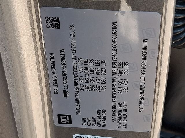 This Vehicle Includes the Following Options: License Plate Front Mounting Package, Preferred Equipment Group 5SA (15 Diagonal Multi-Color Head-Up Display, 4-Way Power Driver Lumbar Seat Adjuster, 4-Way Power Front Passenger Lumbar Seat Adjuster, AutoSense Hands-Free Power Liftgate, Bright Front and Rear Door Sill Plates, Dual Exhaust System, Galvano Bodyside Moldings, Magnetic Ride Control Suspension, Perforated Heather and Ventilated Driver and Front Passenger Seats, Power Release 2nd Row Bucket Seats, Power Tilt and Telescopic Steering Column, and Wheels: 20 x 9 6-Spoke Polished Aluminum), 4WD, 10 Speakers, 3.23 Rear Axle Ratio, 3rd row seats: split-bench, 4-Wheel Disc Brakes, ABS brakes, Adaptive suspension, Air Conditioning, Alloy wheels, AM/FM radio: SiriusXM with 360L, Apple CarPlay/Android Auto, Audio memory, Auto High-beam Headlights, Auto-dimming door mirrors, Auto-dimming Rear-View mirror, Auto-leveling suspension, Automatic temperature control, Bodyside moldings, Bose 10-Speaker Surround with CenterPoint, Brake assist, Bumpers: body-color, Compass, Delay-off headlights, Deleted OnStar Basics, Driver door bin, Driver vanity mirror, Dual front impact airbags, Dual front side impact airbags, Electronic Stability Control, Emergency communication system: OnStar and GMC connected services capable, Exterior Parking Camera Rear, Four wheel independent suspension, Front anti-roll bar, Front Bucket Seats, Front Center Armrest, Front dual zone A/C, Front fog lights, Front reading lights, Fully automatic headlights, Garage door transmitter, Heads-Up Display, Heated door mirrors, Heated Driver and Front Passenger Seats, Heated front seats, Heated rear seats, Heated steering wheel, Illuminated entry, Low tire pressure warning, Memory seat, Navigation system: GMC Connected Navigation, Occupant sensing airbag, Outside temperature display, Overhead airbag, Overhead console, Panic alarm, Passenger door bin, Passenger vanity mirror, Perforated Leather Seating Surfaces, Power door mirrors, Power driver seat, Power Liftgate, Power passenger seat, Power steering, Power windows, Radio: 16.8 Diagonal Premium GMC Infotainment System, Rain sensing wipers, Rear air conditioning, Rear anti-roll bar, Rear reading lights, Rear window defroster, Rear window wiper, Remote keyless entry, Security system, SiriusXM with 360L, Speed control, Speed-sensing steering, Split folding rear seat, Spoiler, Steering wheel memory, Steering wheel mounted audio controls, Tachometer, Telescoping steering wheel, Tilt steering wheel, Traction control, Trip computer, Turn signal indicator mirrors, Variably intermittent wipers, Ventilated front seats, and Voltmeter.